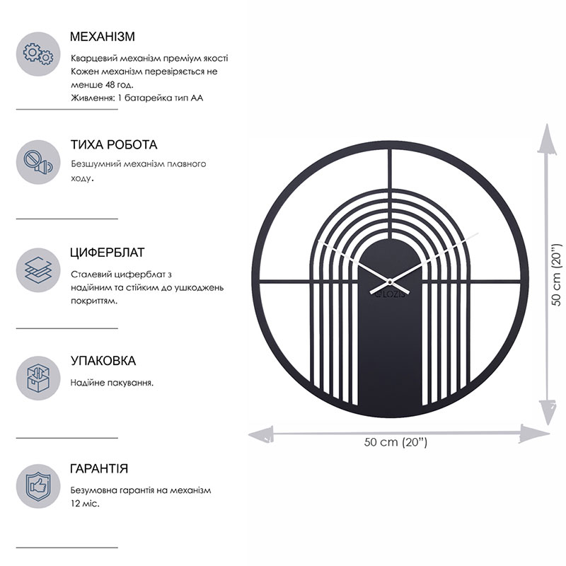 Настінний годинник Arch Black (чорний), 50 см