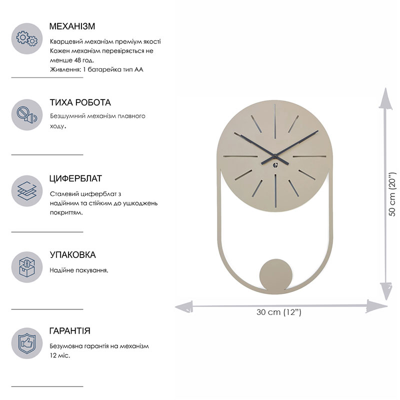 Настінний годинник Balance Beige (бежевий), 50х30 см
