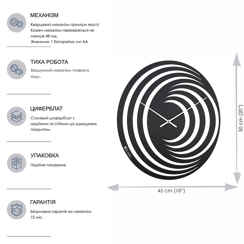 Настінний годинник Hypnosis (чорний), 50х45 см