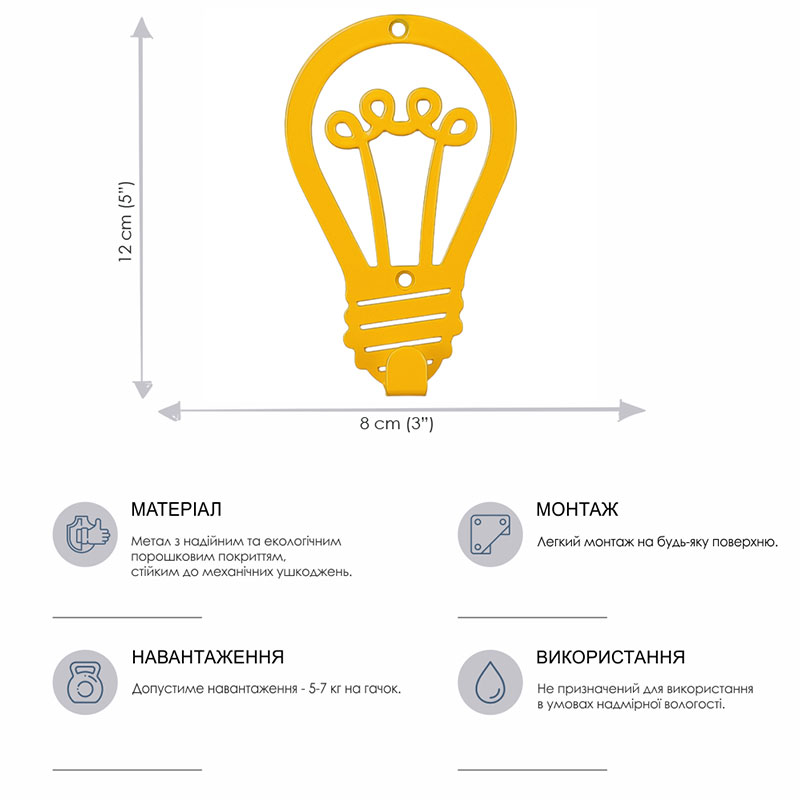 Настінний гачок для одягу Glozis Lamp (жовтий)