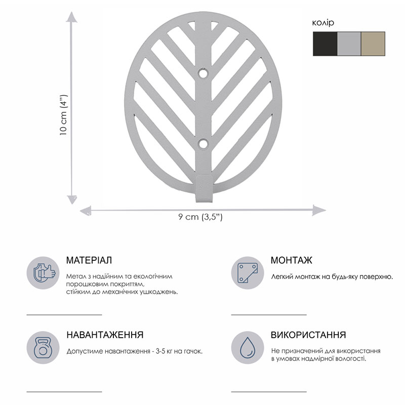 Настінний гачок для одягу Glozis Mod (сірий)