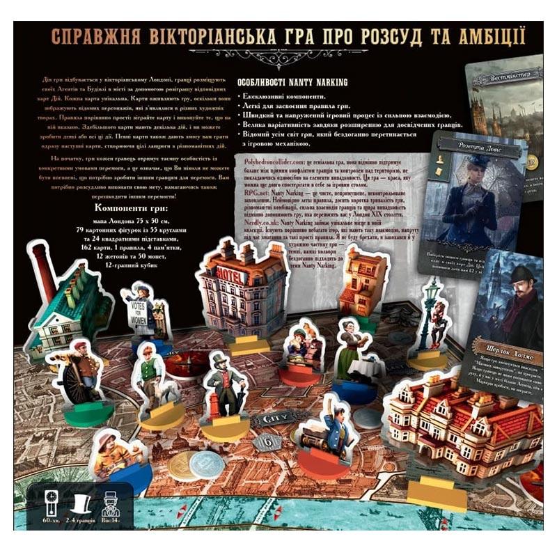 Nanty Narking: Великі сподівання – це вікторіанська, дотепна настільна гра з контролю територій та управління руками з прихованою рольовою механікою
