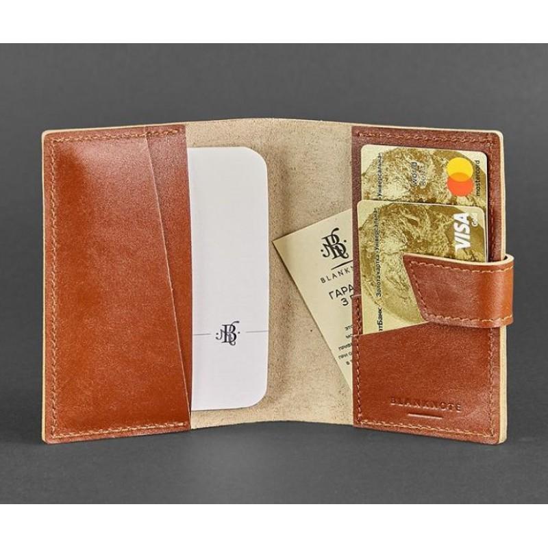 Наша нова обкладинка в універсальному коричневому кольорі сподобатися і чоловікам, і жінкам. Всередині є 2 відділення для паспортів і 2 відділення для карток. Закривається обкладинка хлястиком з кнопкою.