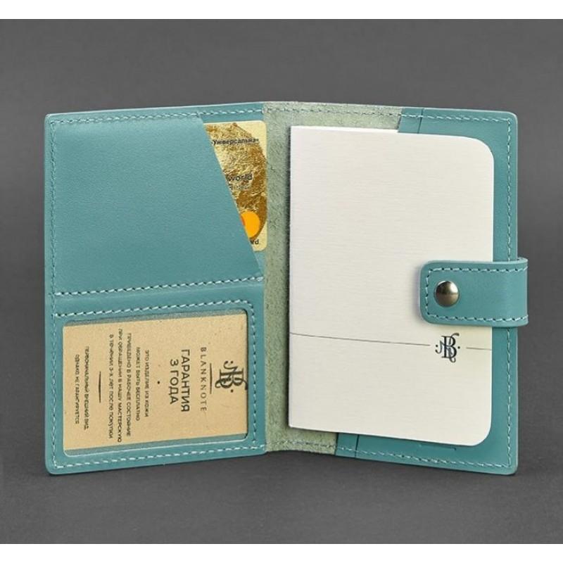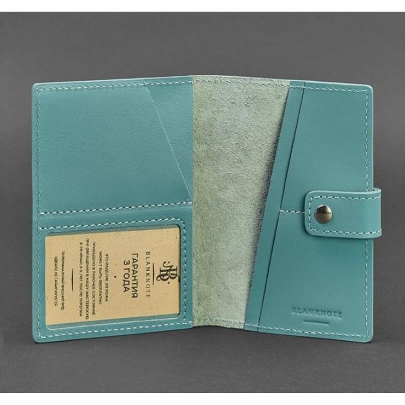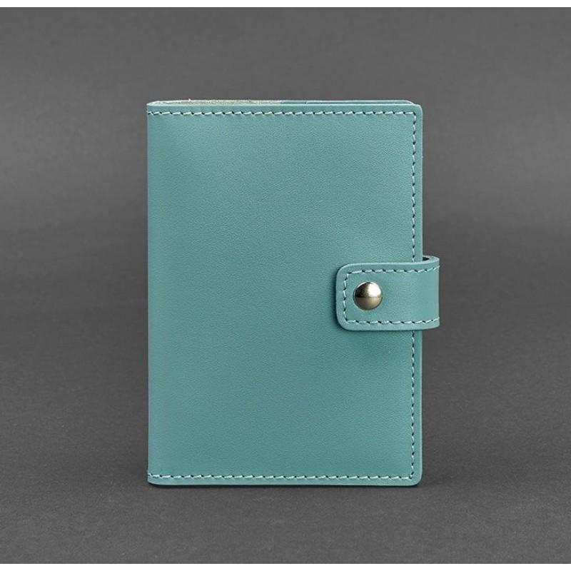 Обкладинка для паспорта зі шкіри з віконцем 5.0 (бірюзова)