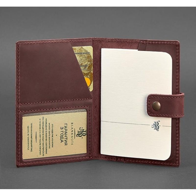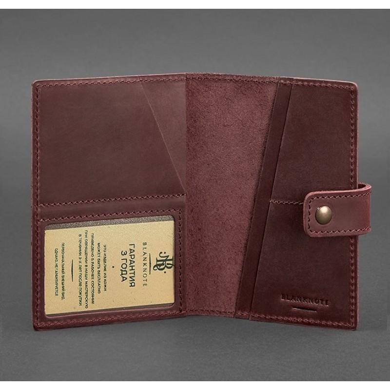 Обкладинка для паспорта зі шкіри з віконцем 5.0 (бордова) шкіра Crazy Horse