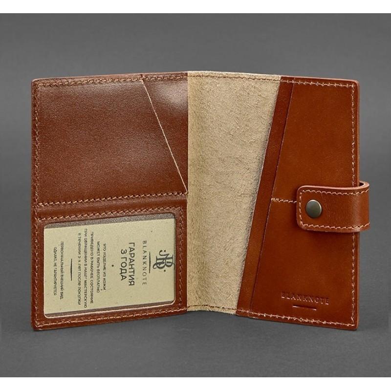 Обкладинка для паспорта зі шкіри з віконцем 5.0 (світло-коричнева)