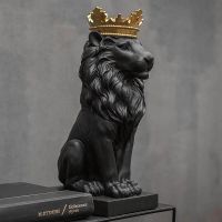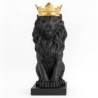 Гіпсова скульптура "Лев з золотою короною" (чорний), 35 см
