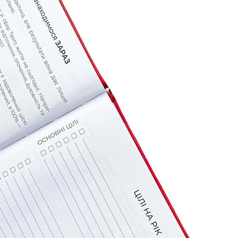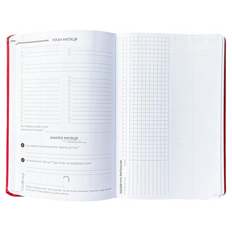 Ви отримаєте особистого помічника для аналізу, планів на рік, постійного фокусу на всіх сферах життя, щоб жодна з них не відставала. Завжди під рукою буде вся необхідна інформація, всі списки та чек-листи! Окрім цього – кожен розворот покаже вам удачі та складності найвідоміших світових компаній та людей, які своїм прикладом будуть підтримувати та надихати. Вони на своїх прикладах покажуть, як досягти успіху у всіх сферах життя (звичайно, так, вся інформація в блокноті побудована на основних сферах життя).