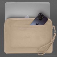 Шкіряний чохол для ноутбука на блискавці з кишенею та петлею на руку 29.0 (світло-бежевий)