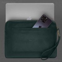 Шкіряний чохол для ноутбука на блискавці з кишенею та петлею на руку 29.0 (зелений)