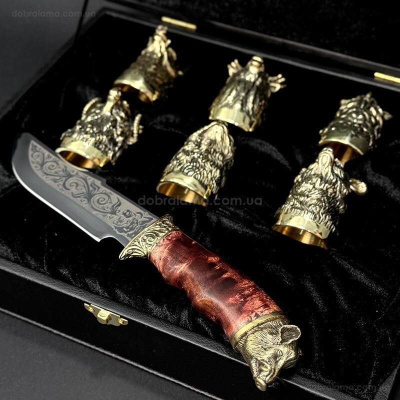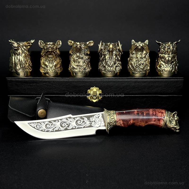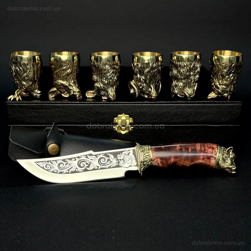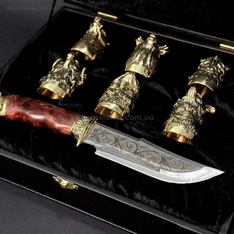 Подарунковий набір для чоловіків «Мисливський» (6 бронзових чарок, ніж)