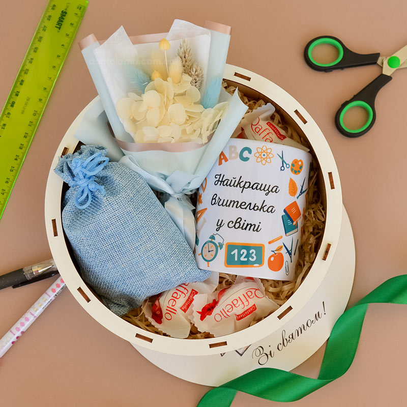 Подарунковий набір «Найкращому вчителю» – це ваш вираз глибокої подяки. Адже вчителька – це не лише вчитель, а й наставник, друг та натхненник. Подаруйте їй цей набір на знак вдячності за все, що вона робить, і щоб показати, наскільки вона важлива для вас.