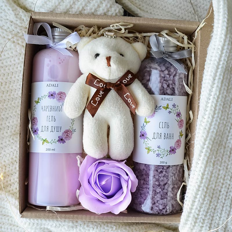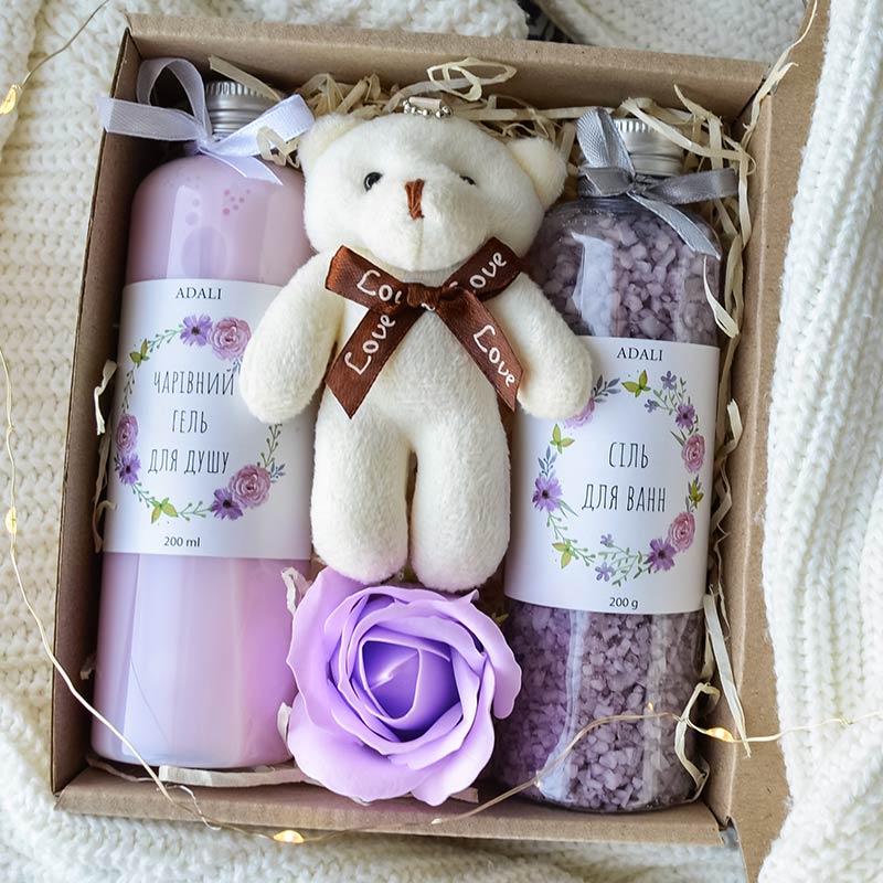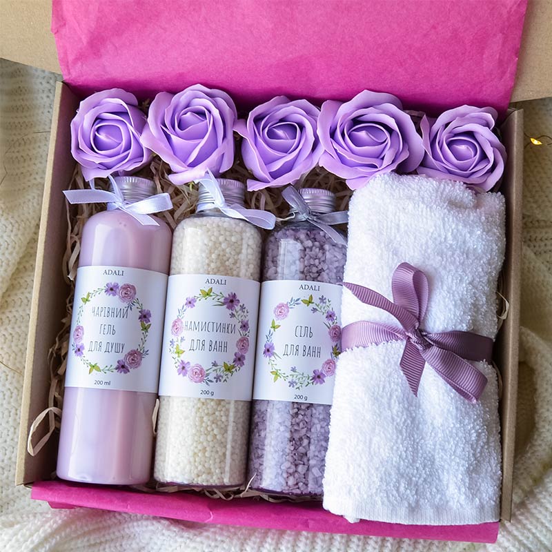 Мила коробочка, перев'язана красивою атласною стрічкою, відразу зацікавить дівчину. Розв'язавши стрічку і відкривши коробочку, всередині вона виявить малинову піну для ванни і гель для душу, ароматизовану бомбочку для ванн і мильні троянди. З таким набором кожне прийняття ванн перетвориться на свято, що дарує насолоду і гармонію.