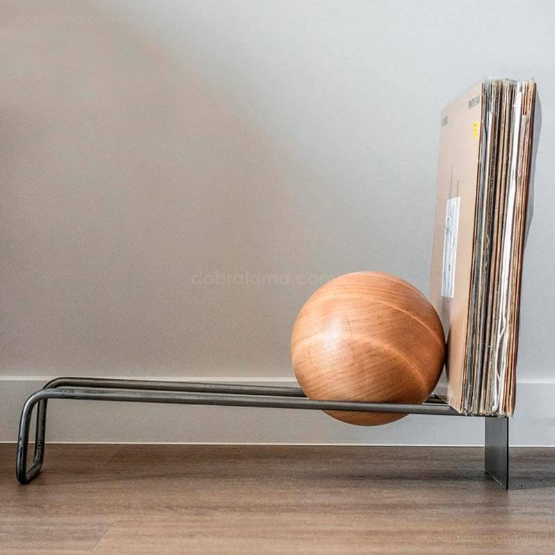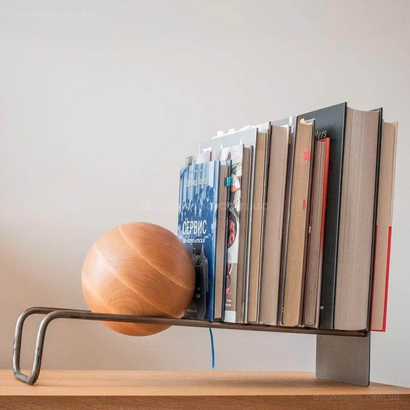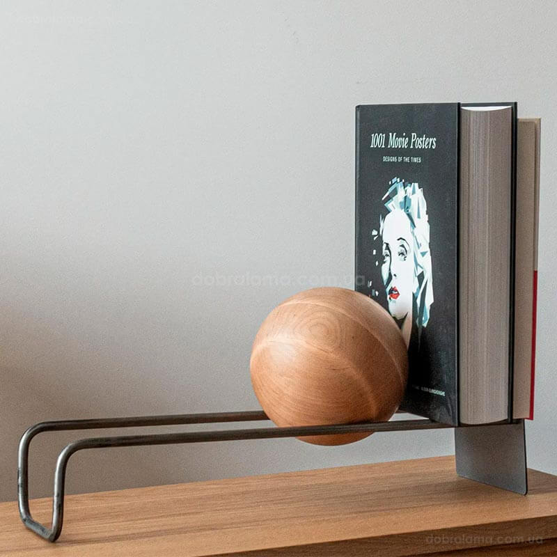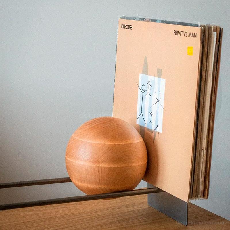 Підставка для вінілових платівок або книг з дерев'яною кулею