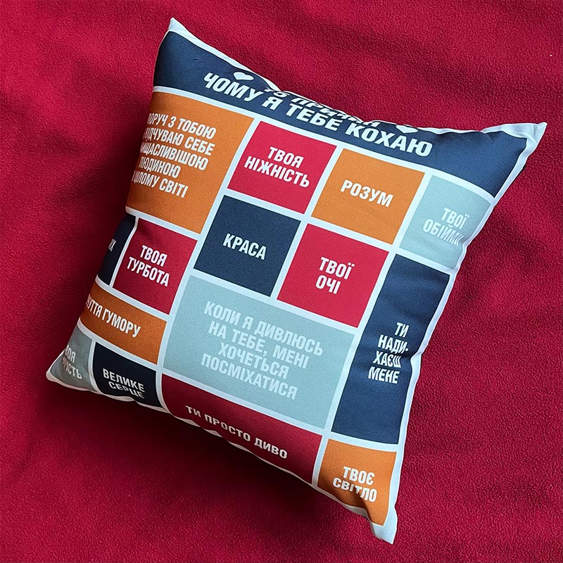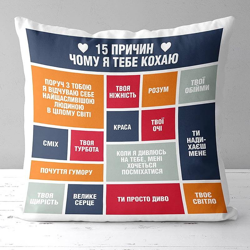 Подушка «15 причин, чому я тебе кохаю» (40х40 см)