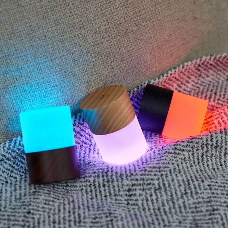 Колір світіння змінюється від дотику до дерев'яної частини нічника з сімома яскравими кольорами, що чергуються.