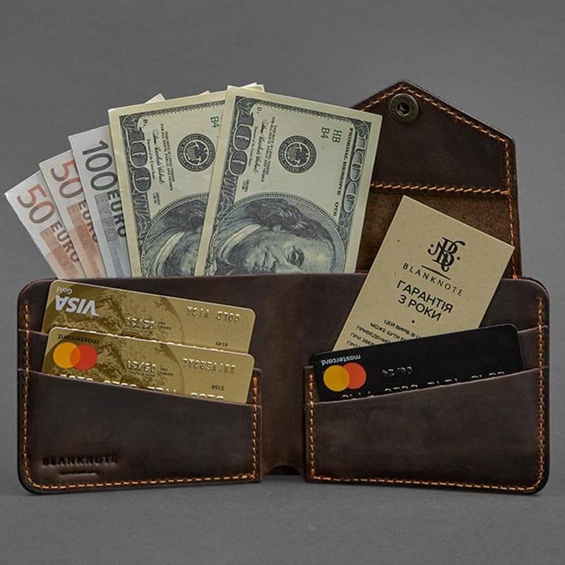 Портмоне з натуральної шкіри 4.2 (темно-коричневе з помаранчевим)