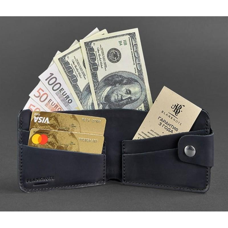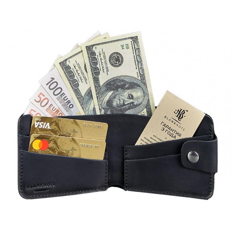 Компактне чорне портмоне з натуральної шкіри Crazy Horse.