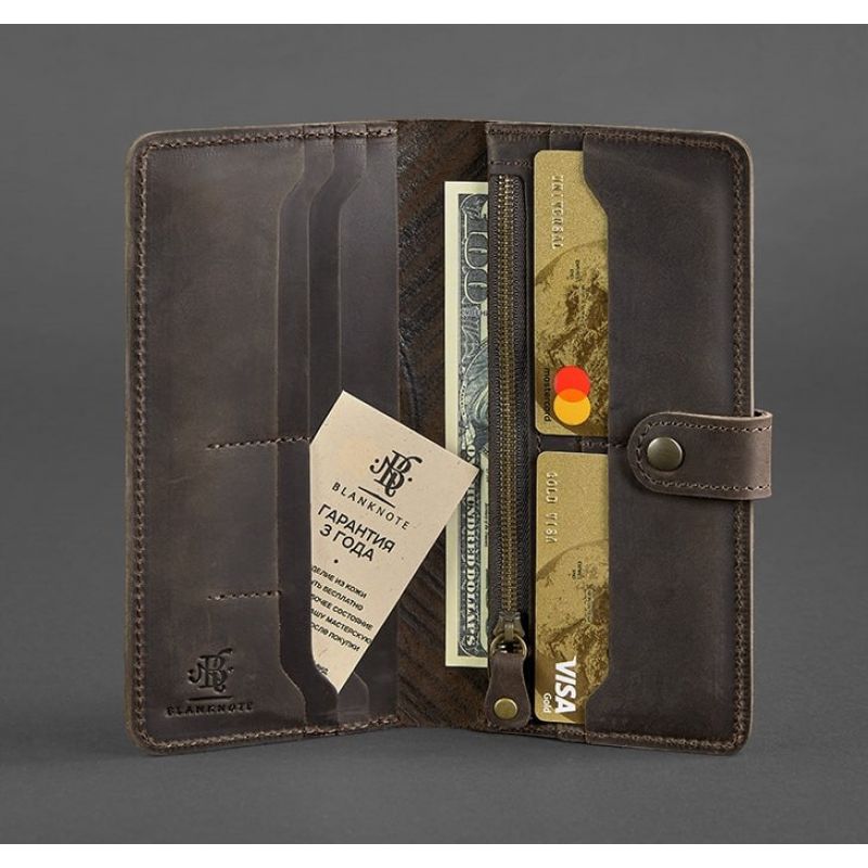 Усередині є одна кишеня на блискавці для монет та інших дрібниць, два великих відділення для купюр, а також дев'ять відділень для пластикових карт і візиток. І додатково є два невеликих відділення для міні-карток (брелоків).