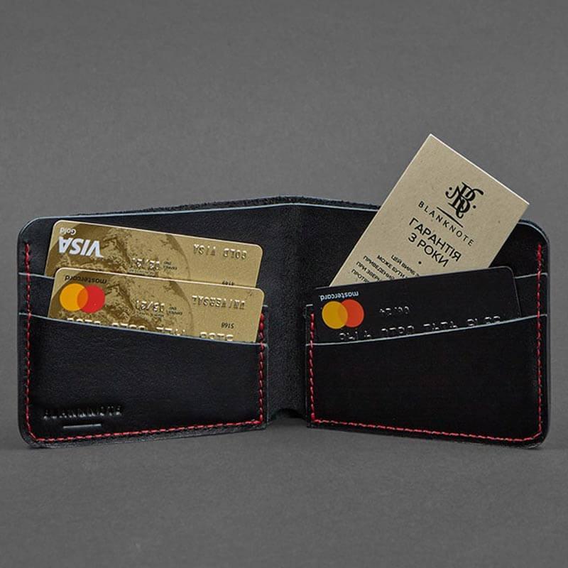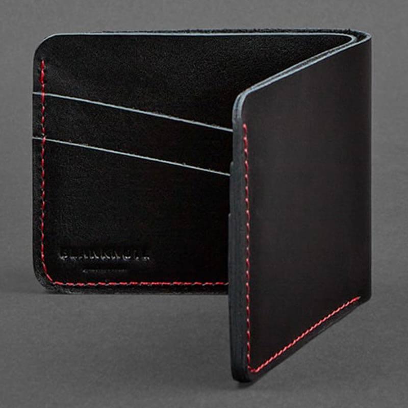Портмоне з натуральної шкіри чоловіче 4.1 (чорне з червоним)
