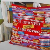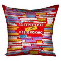 Подушка «55 причин, чому я тебе кохаю» 40х40 см (червона)