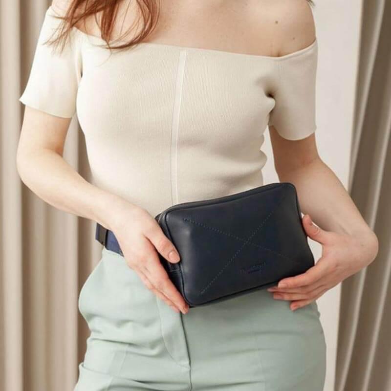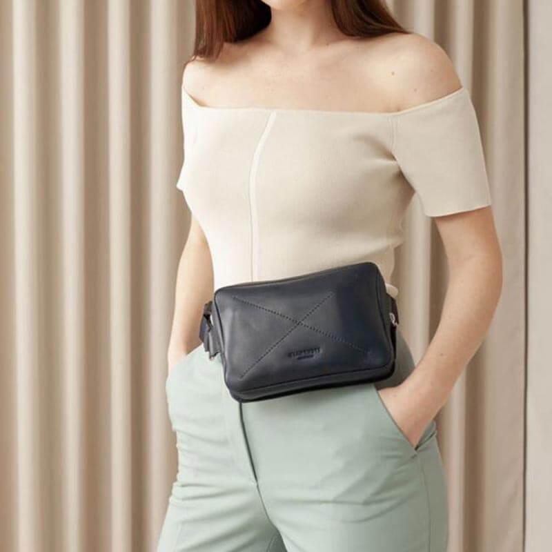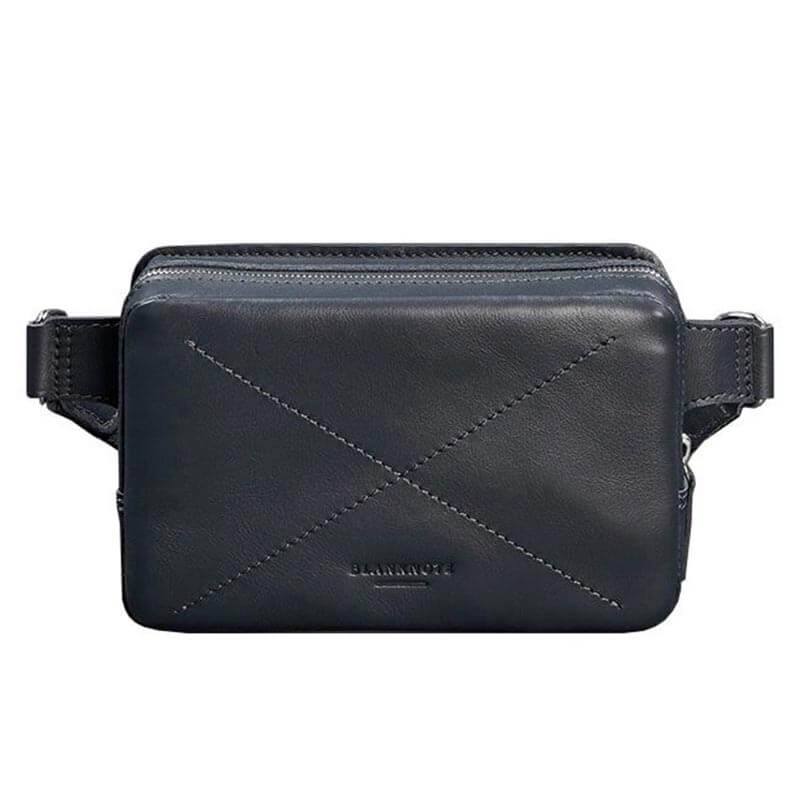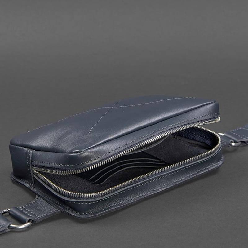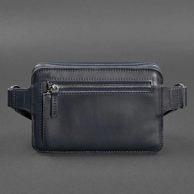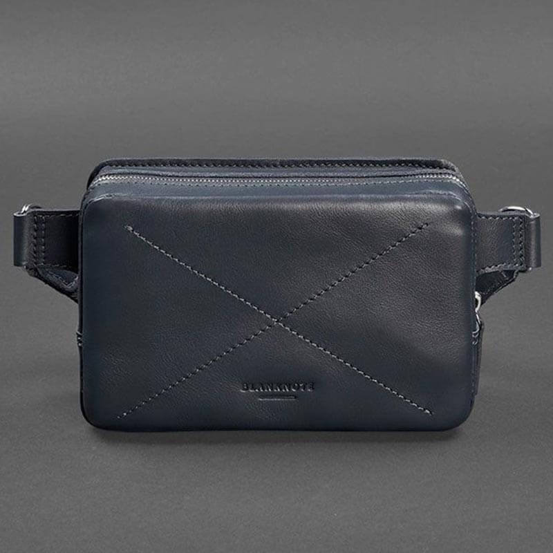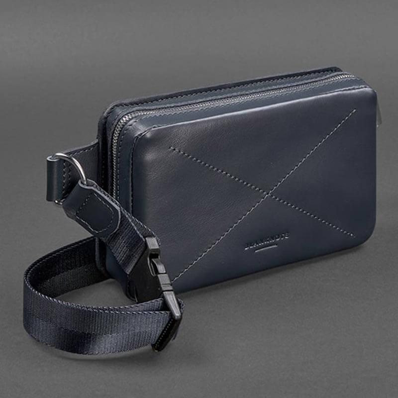 Поясна сумка-бананка Dropbag шкіряна (темно-синя) шкіра Krast