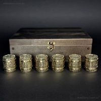Набір бронзових чарок «Бочка» (6 шт) в дерев'яній коробці