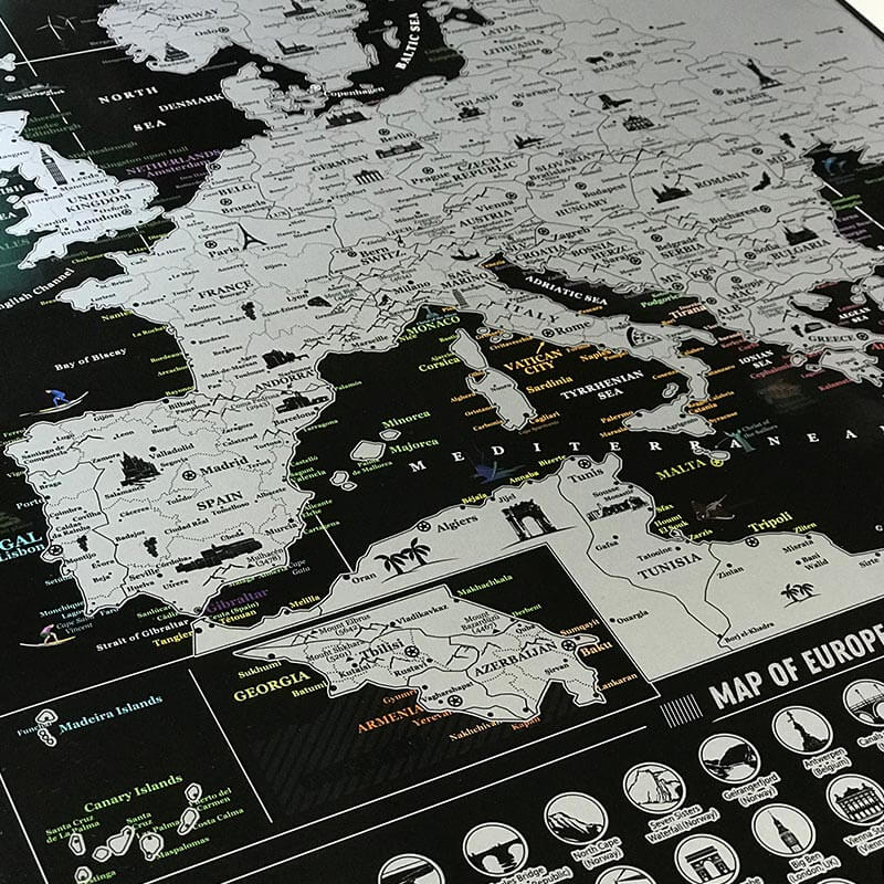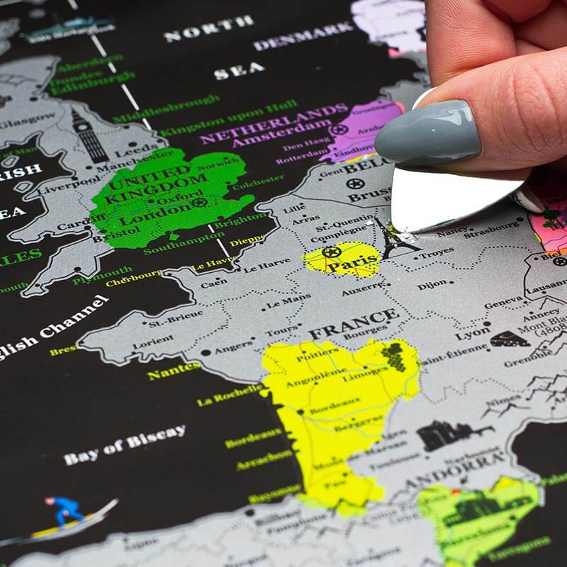 З нашої Скретч картою Європи, відзначаючи ваші пригоди - ви створите унікальну яскраву карту ваших особистих відкриттів і спогадів!