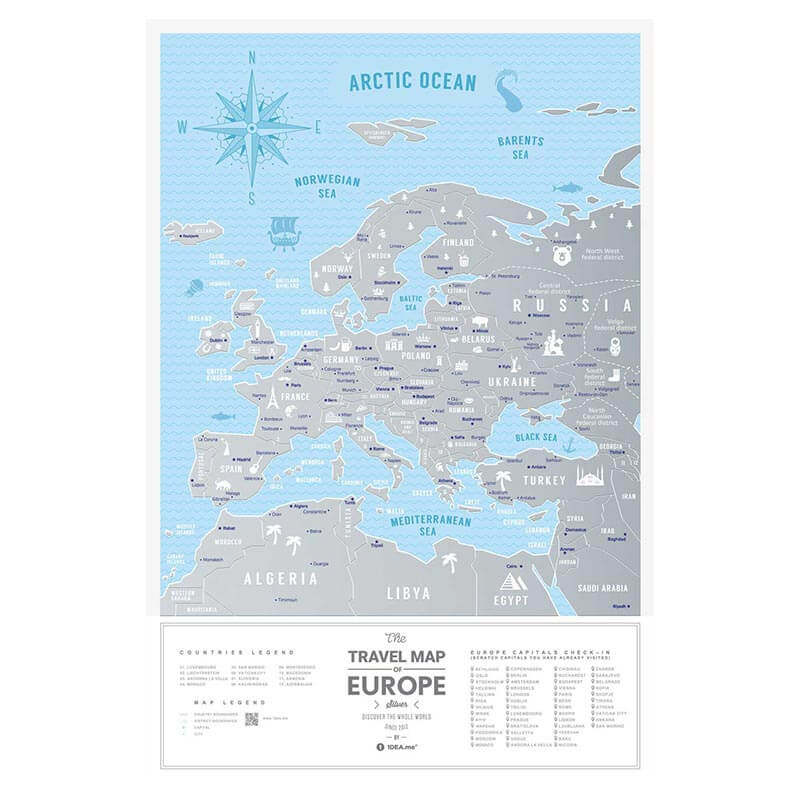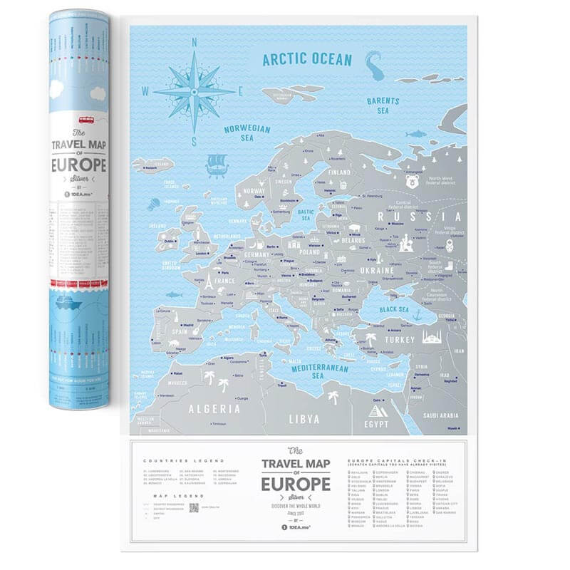 Скретч-карта Європи Travel Map Silver Europe (англійська мова) в тубусі