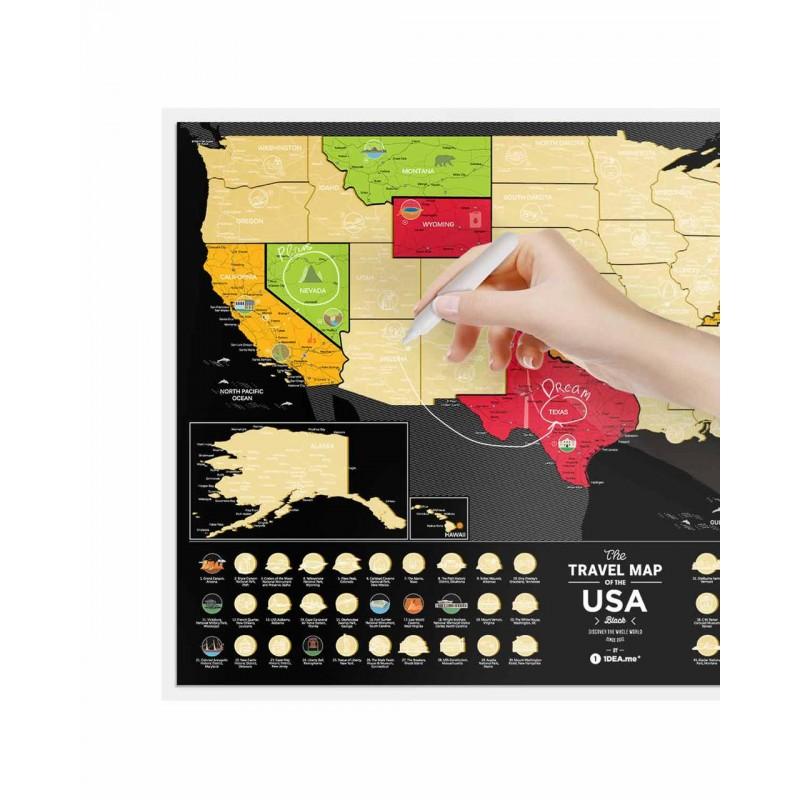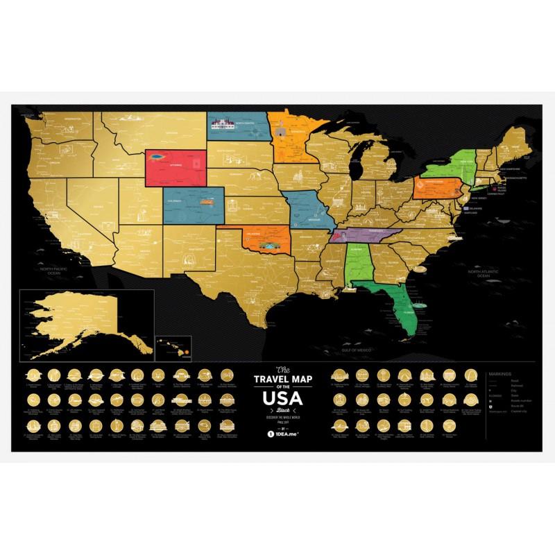 Скретч-карта США Travel Map of the USA Black (англійська мова) в тубусі