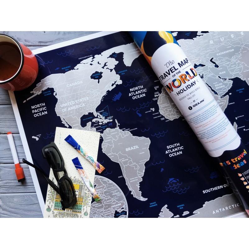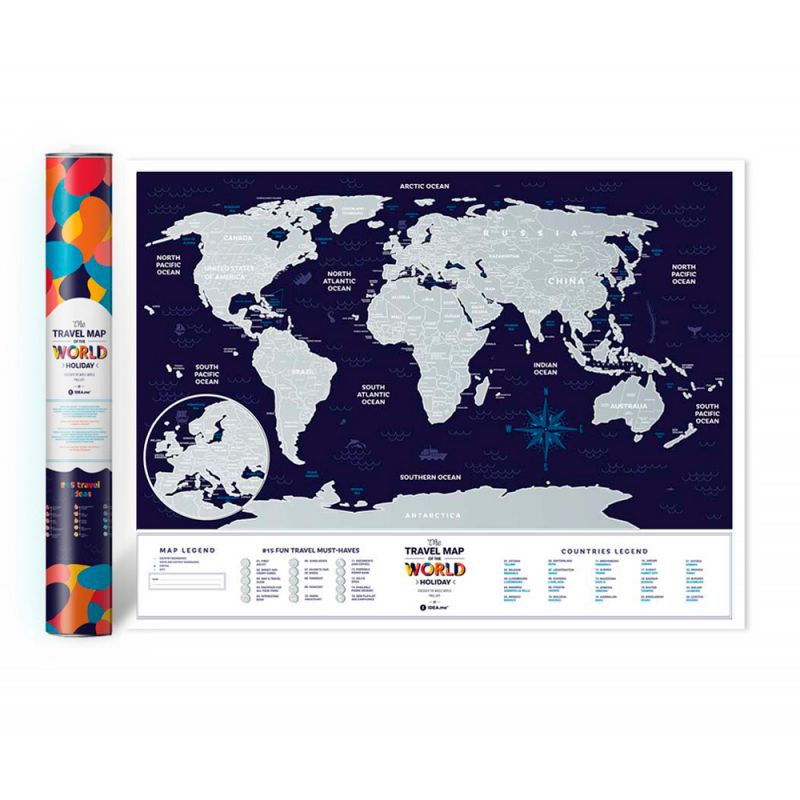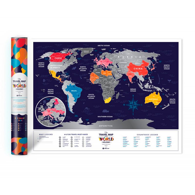 Скретч-карта світу Travel Map Holiday (англійська мова) в тубусі
