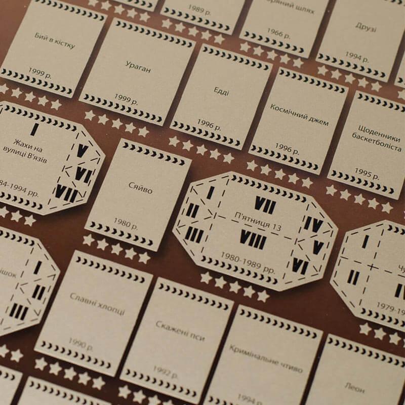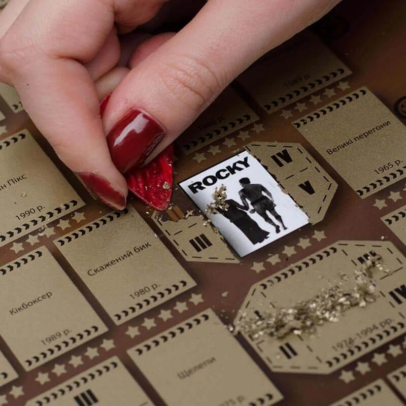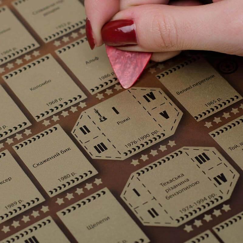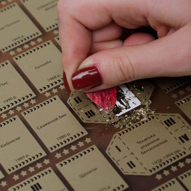 Скретч постер My Poster Cinema edition 20 century українською мовою - новий продукт, для справжніх любителів кіно! Це великий кінопостер, під золотим скретч покриттям якого ховаються кіношедеври 20 століття, 300 культових фільмів і серіалів, твоя задача - подивитися їх усі!