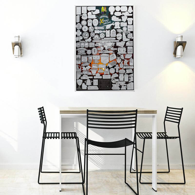 My Poster Extreme edition ідеально впишеться в будь-який інтер'єр, темний з яскравим акцентом фон, біла фарба і срібний скретч шар, виглядають супер стильно!