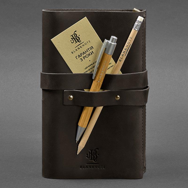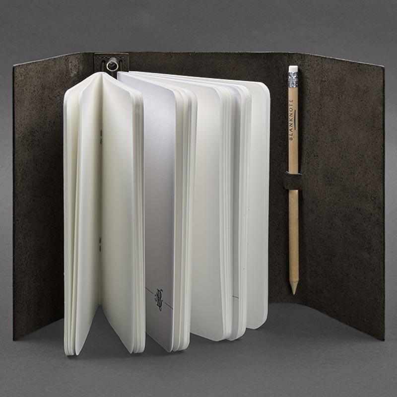 Цей блокнот виконаний в цікавому форм-факторі: не класична книжкова палітурка, а, так званий "софт-бук", тобто прикріплені до цілісного шматка шкіри кілька зошитів. В якості обкладинки - високоякісна шкіра. Всередині - класичний блокнот, розділений на три знімні зошити. У кожному зошиті - по 40 аркушів. Ви самі можете вибрати колір паперу зошитів.