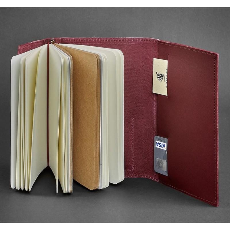 Цей блокнот виконаний в цікавому форм-факторі: не класична книжкова палітурка, а, так званий "софт-бук", тобто прикріплені до цілісного шматка шкіри кілька зошитів. В якості обкладинки - високоякісна шкіра. Всередині - класичний блокнот, розділений на три знімні зошити. У кожному зошиті - по 40 аркушів. Ви самі можете вибрати колір паперу зошитів.