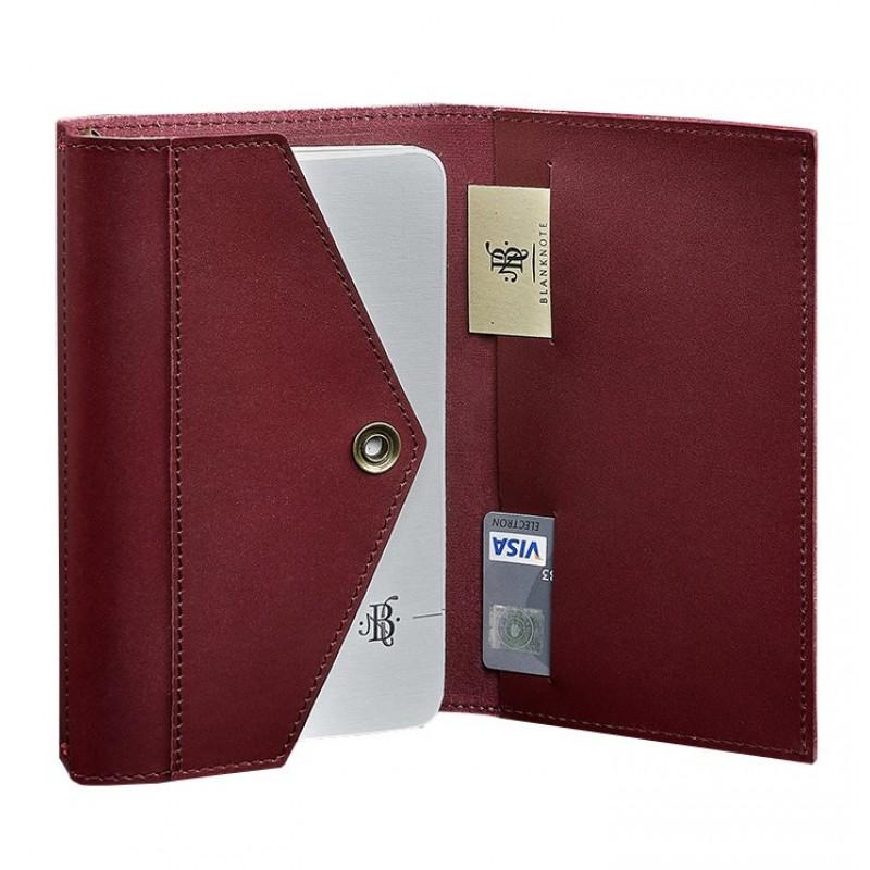 Закривається СофтБук на кнопку. Всередині є два відділення для карток або візиток. На задній стінці є відділення для зберігання ручки і візиток.