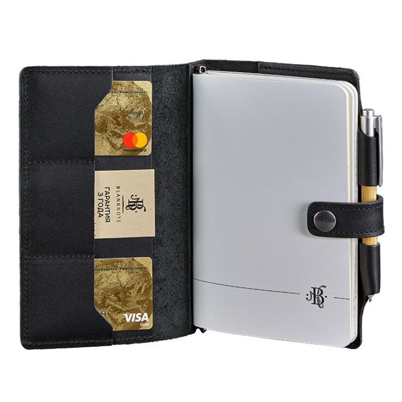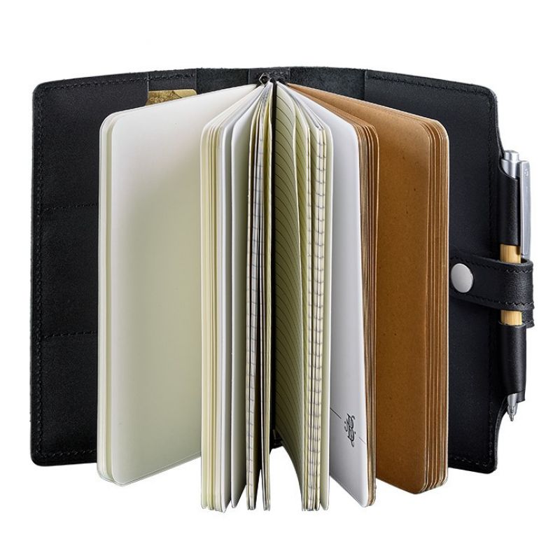 Цей блокнот виконаний в цікавому форм-факторі: не класична книжкова палітурка, а, так званий "софт-бук", тобто прикріплені до цілісного шматка шкіри кілька зошитів. В якості обкладинки - високоякісна шкіра. Всередині - класичний блокнот, розділений на три знімні зошити. У кожному зошиті - по 40 аркушів. Ви самі можете вибрати колір паперу зошитів.