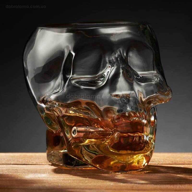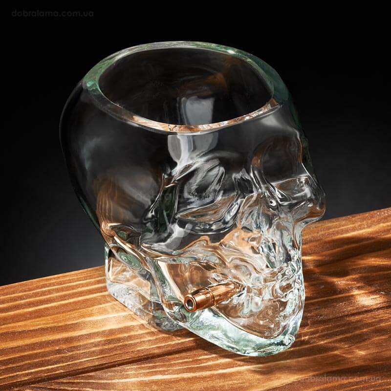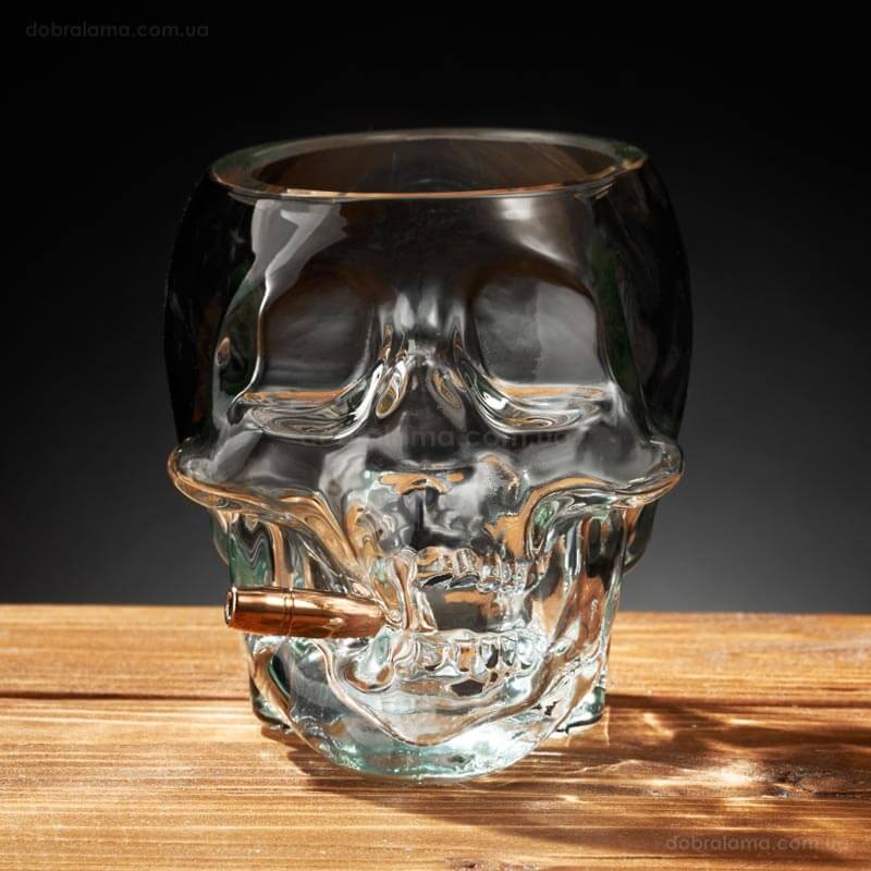 Незвичайна склянка у формі черепа із справжньою кулею 7.62 мм в зубах потішить будь-якого чоловіка. Склянка-череп з кулею – це не просто посуд, а символ сміливості, стилю та впевненості. Цей унікальний дизайн дивує своєю деталізацією та реалістичністю.