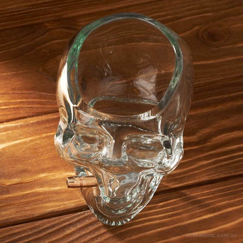 Склянка череп з кулею - це ідеальний подарунок для себе або для своїх друзів, які люблять екстремальні речі. Не варто перейматися на рахунок упаковки, ми подбали і помістили склянку в дерев'яну подарункову коробку.