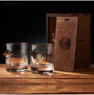 Склянки мають красиву подарункову упаковку. Поштучно склянки упаковані в красивий подарунковий тубус з шпону з декоративним наповнювачем. Набори склянок c кулею упаковані в дерев'яну подарункову коробку з наповнювачем.