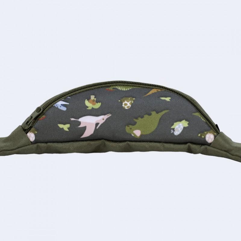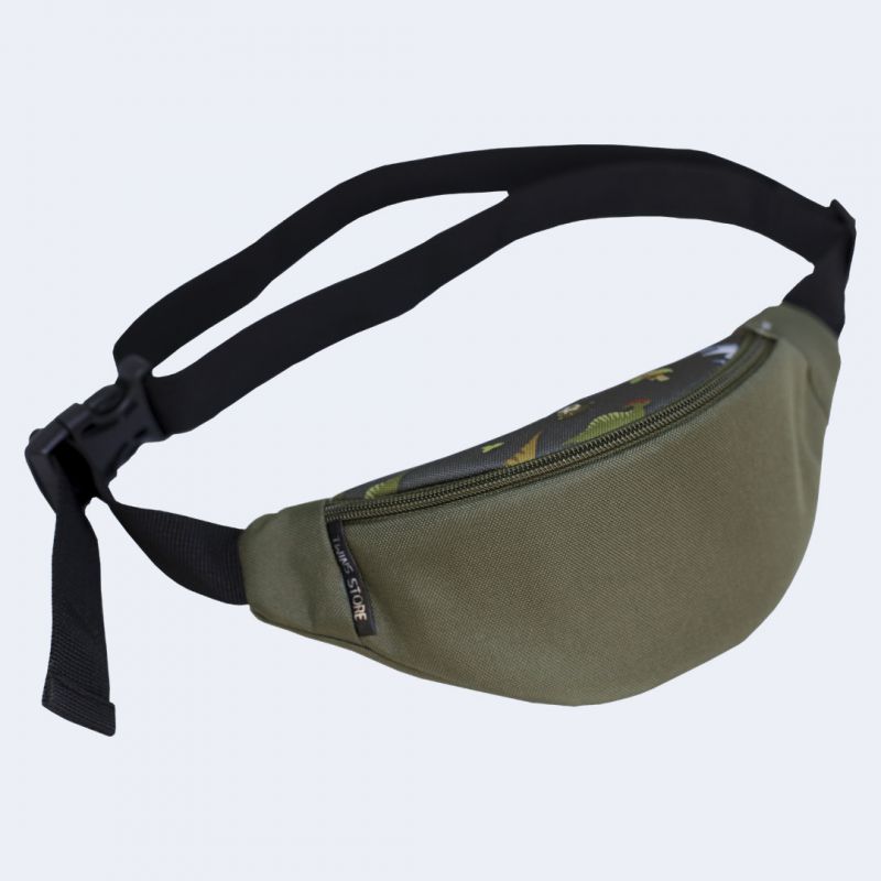 Сумка-бананка дитяча хакі з динозаврами (суцільна)
