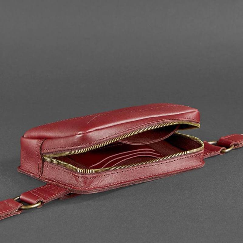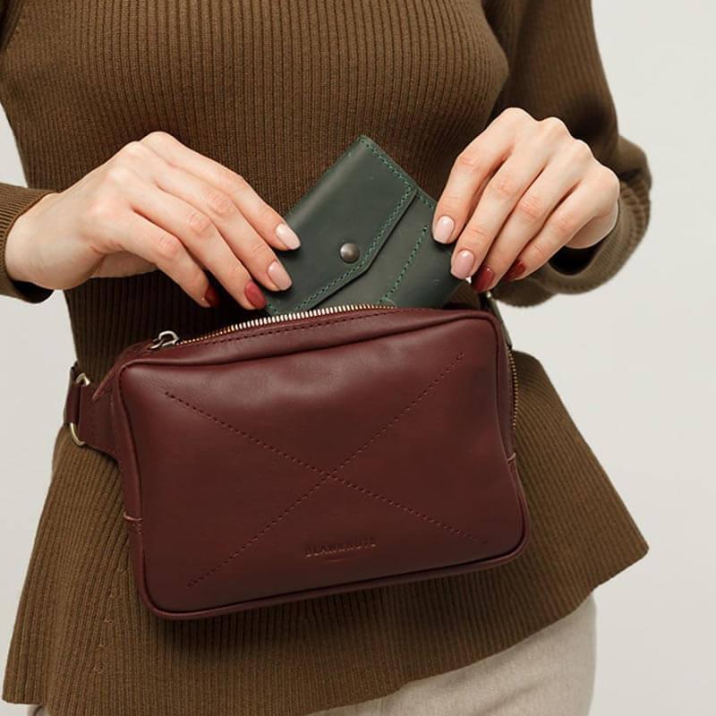 Поясна сумка-бананка Dropbag шкіряна (бордова) шкіра krast