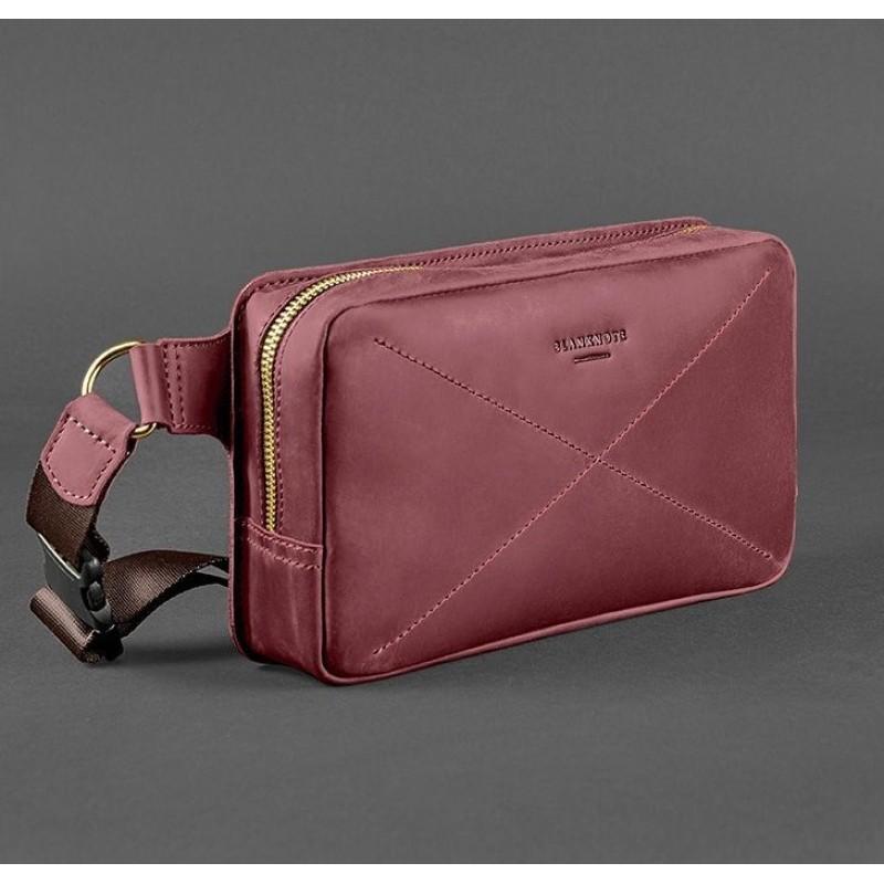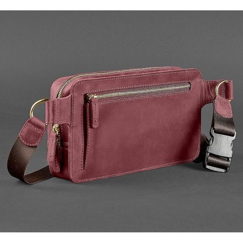 Поясна сумка-бананка Dropbag Maxi шкіряна (шкіра crazy horse) бордова