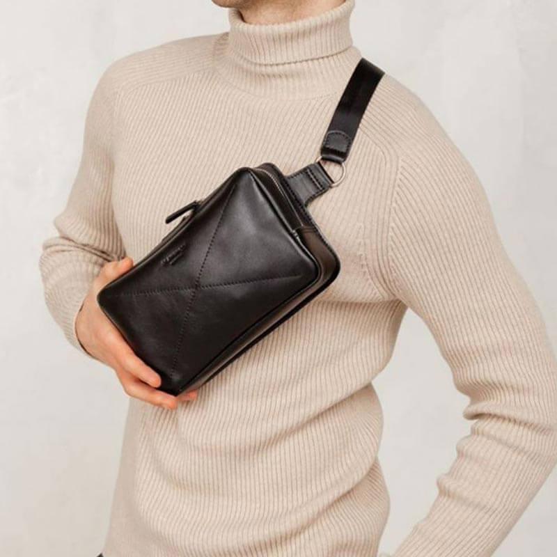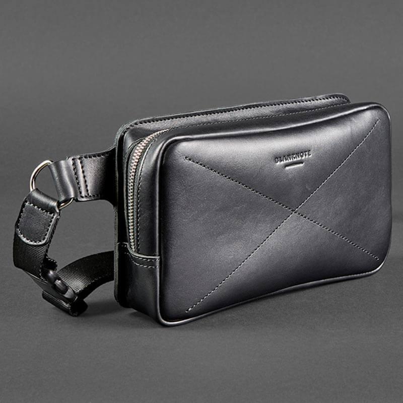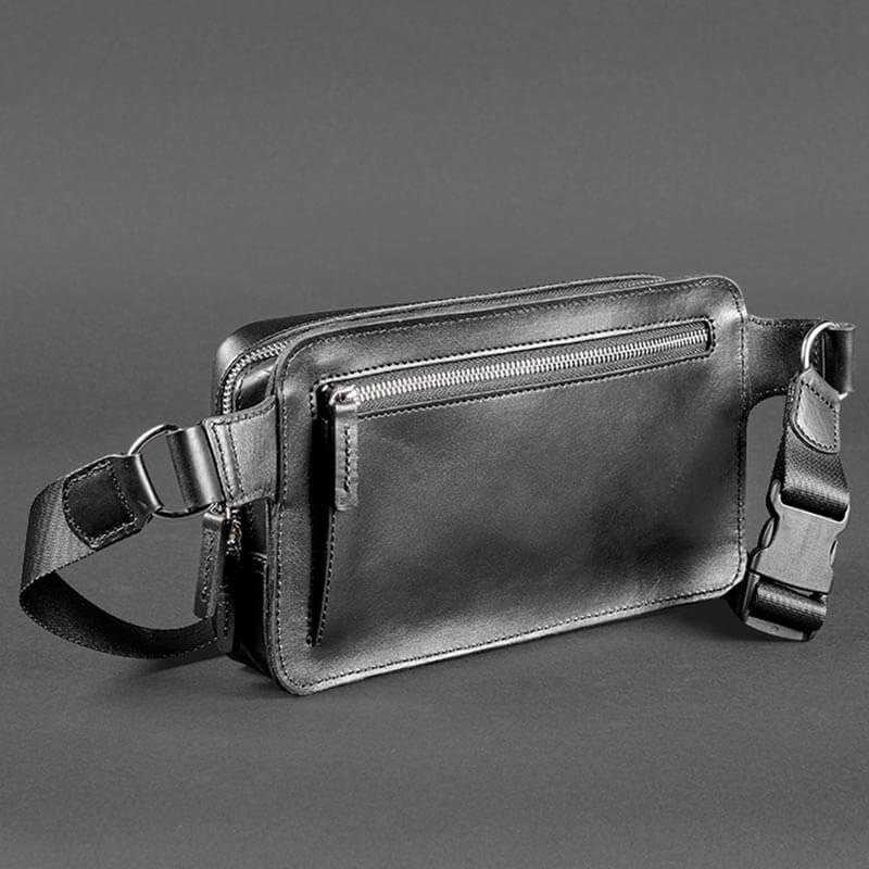 Поясна сумка-бананка Dropbag Maxi шкіряна (чорна) шкіра Krast