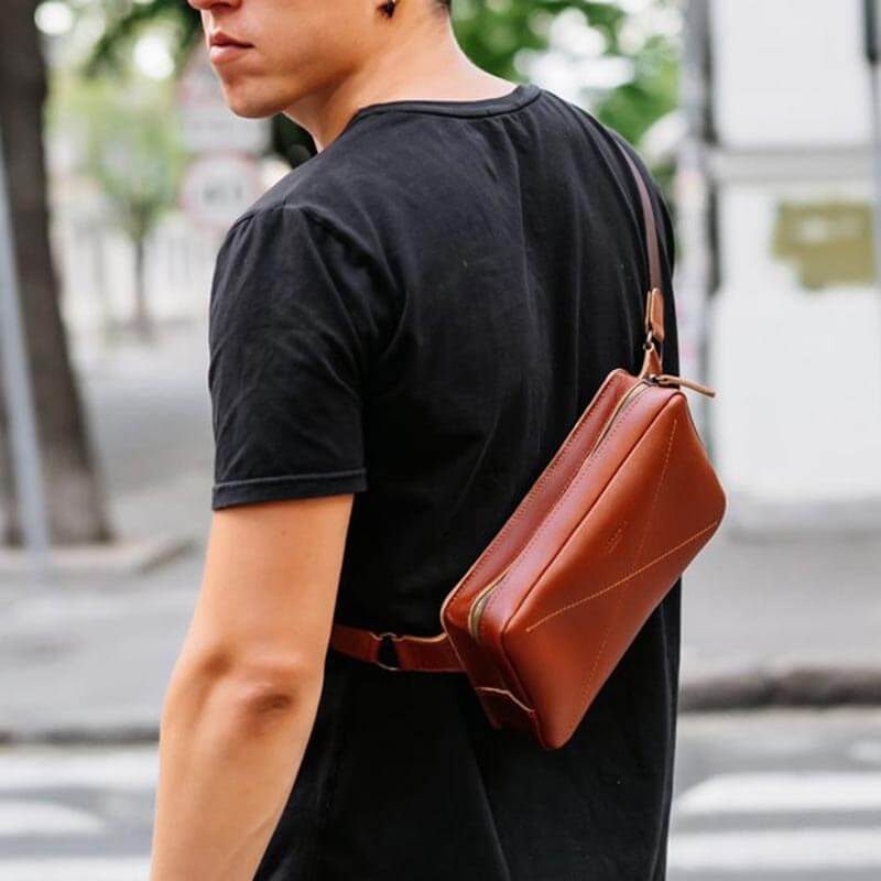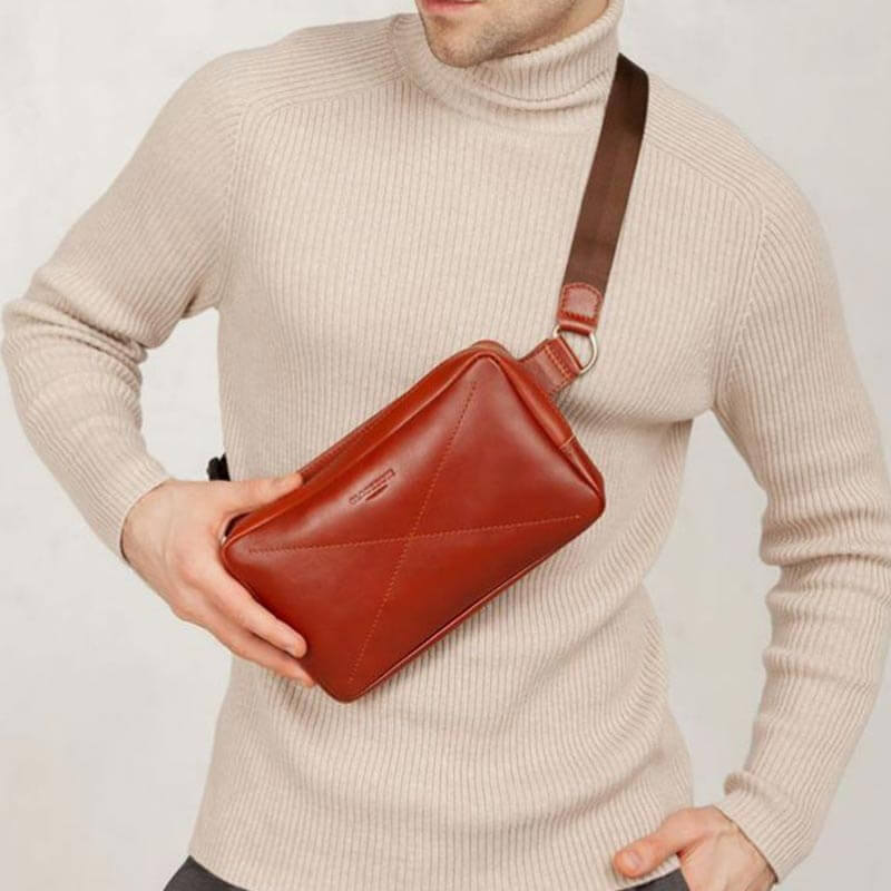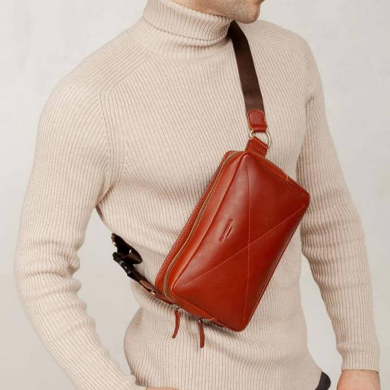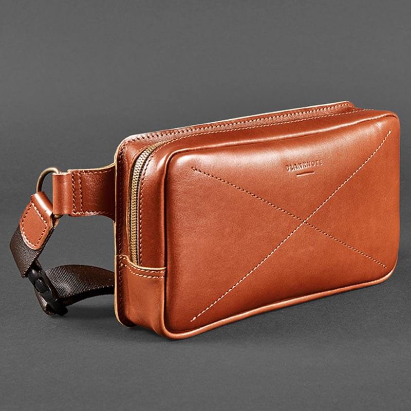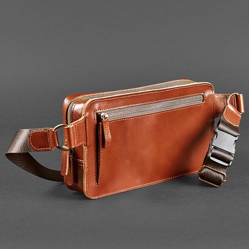 Поясна сумка-бананка Dropbag Maxi шкіряна (світло-коричнева)
