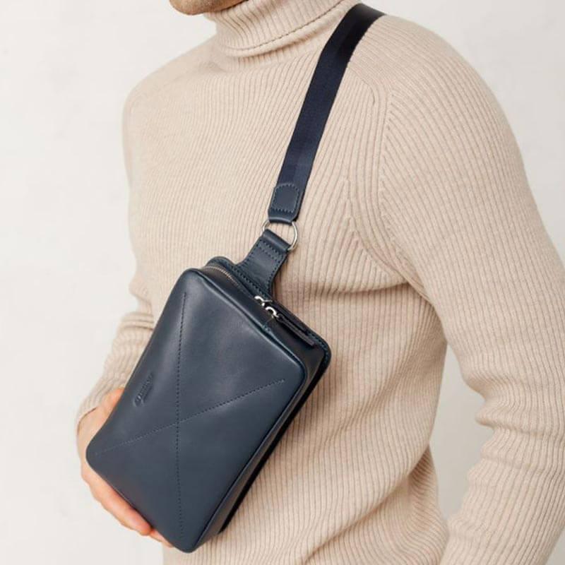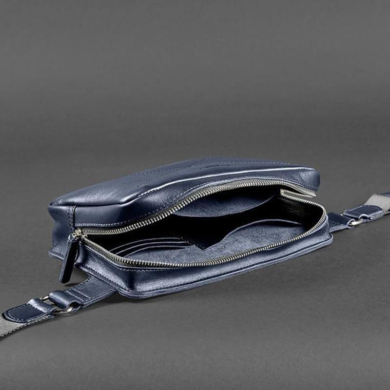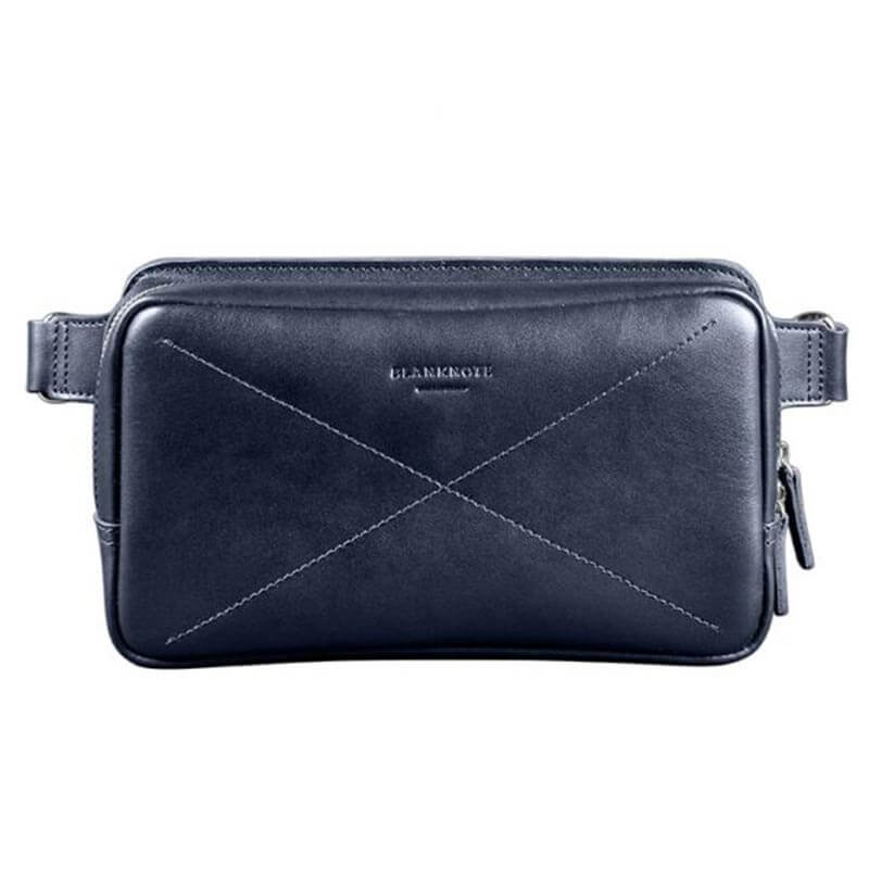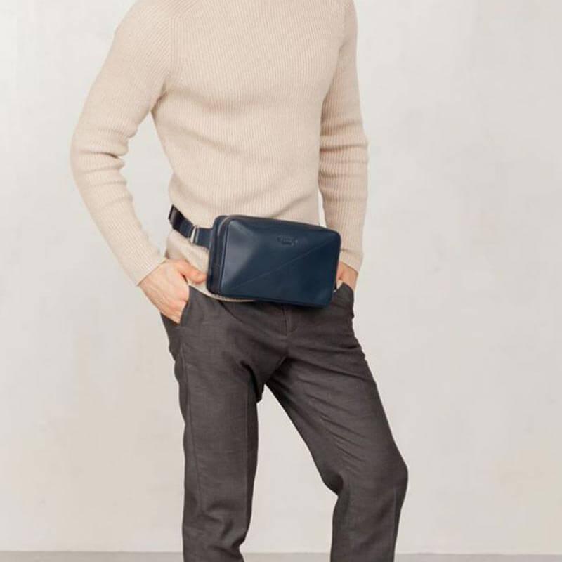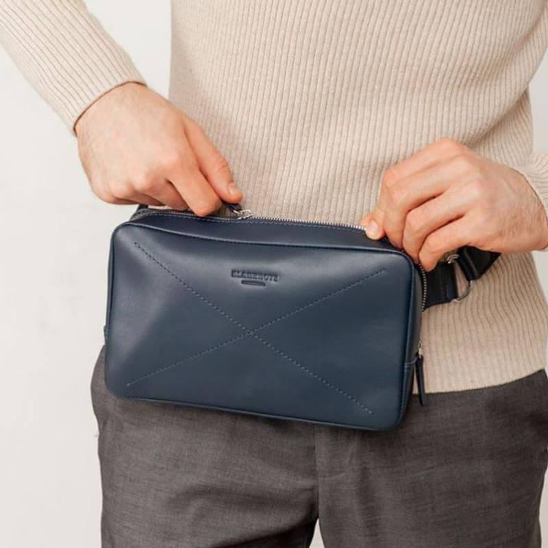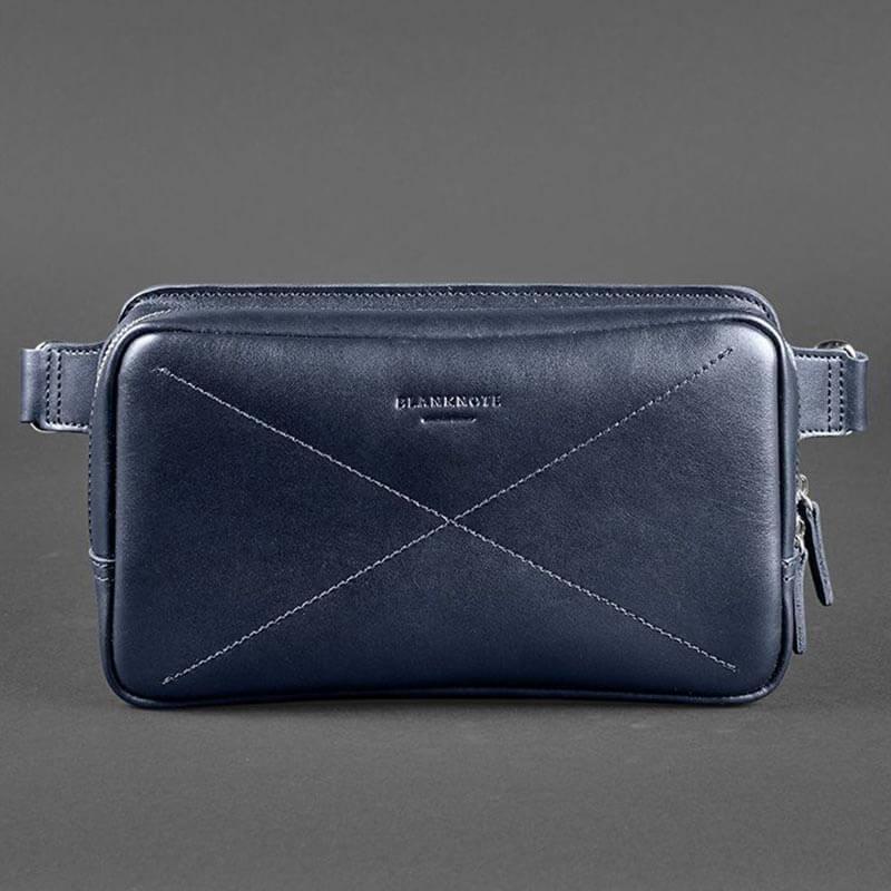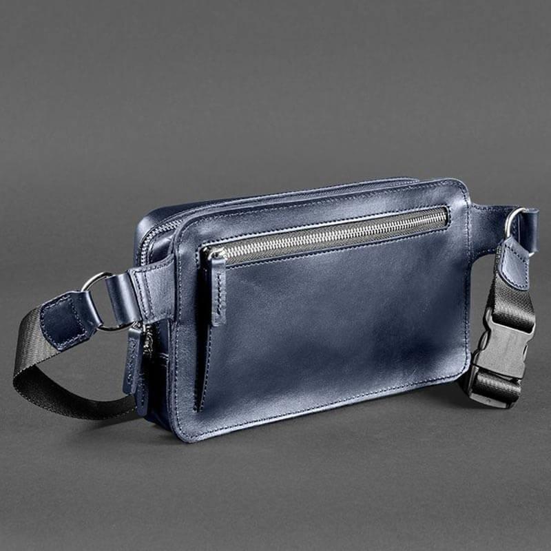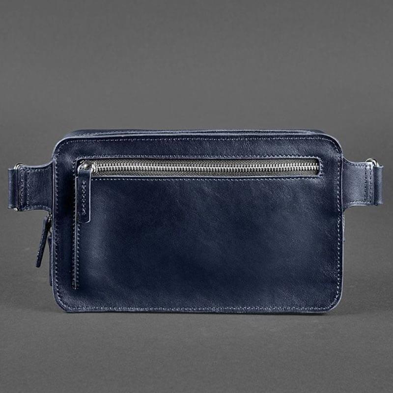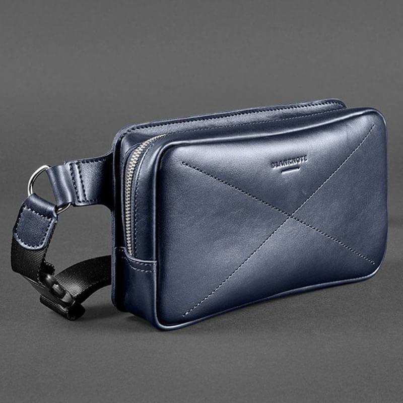 Поясна сумка-бананка Dropbag Maxi шкіряна (темно-синій)