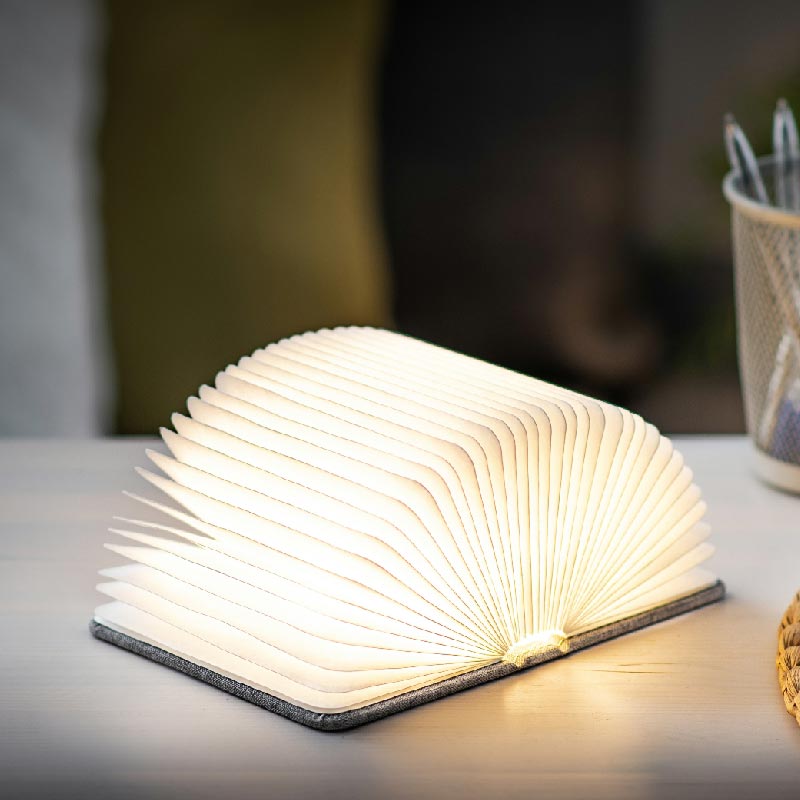 У закритому вигляді світильник маскується під лляний блокнот, але варто його відкрити, як він перетворюється на світильник з м'яким теплим світлом.