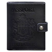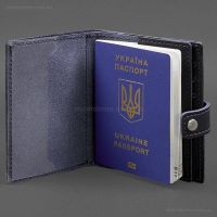 Шкіряна обкладинка-портмоне для паспорта з гербом України 25.0 (темно-синя)