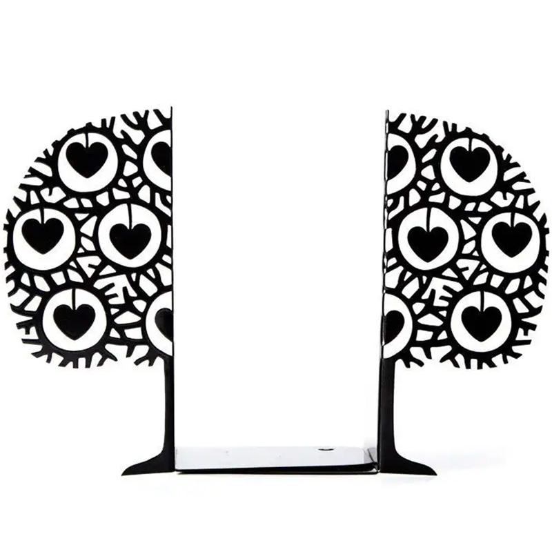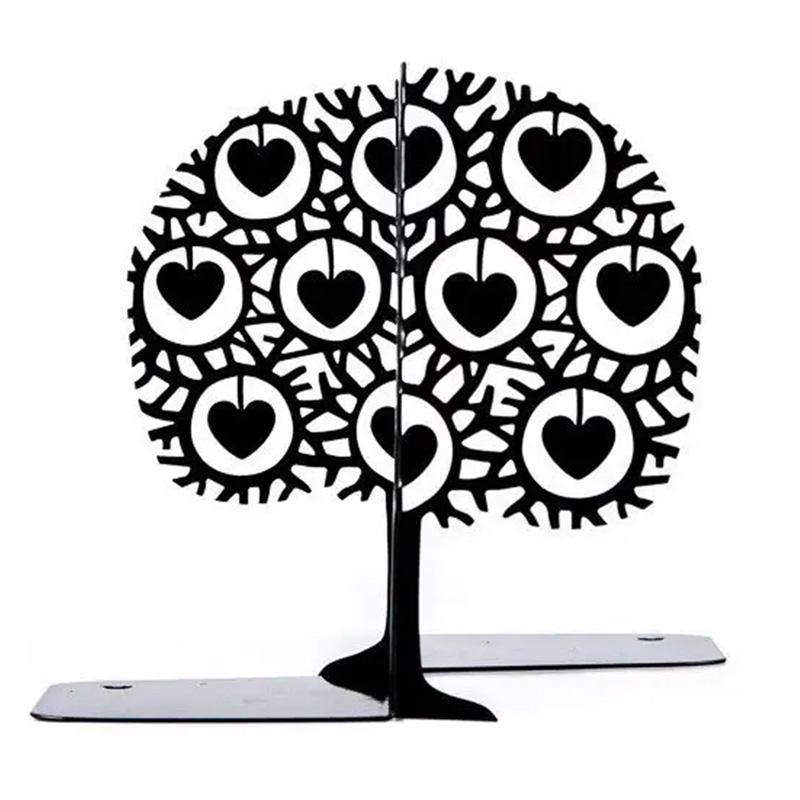 Металеві упори, пофарбовані в чорний колір, набувають форми дерева, прикрашеного делікатними серцями. Вони надійно утримують книги на полиці, створюючи водночас відчуття, ніби поруч із вашою колекцією книг розташований затишний парк.