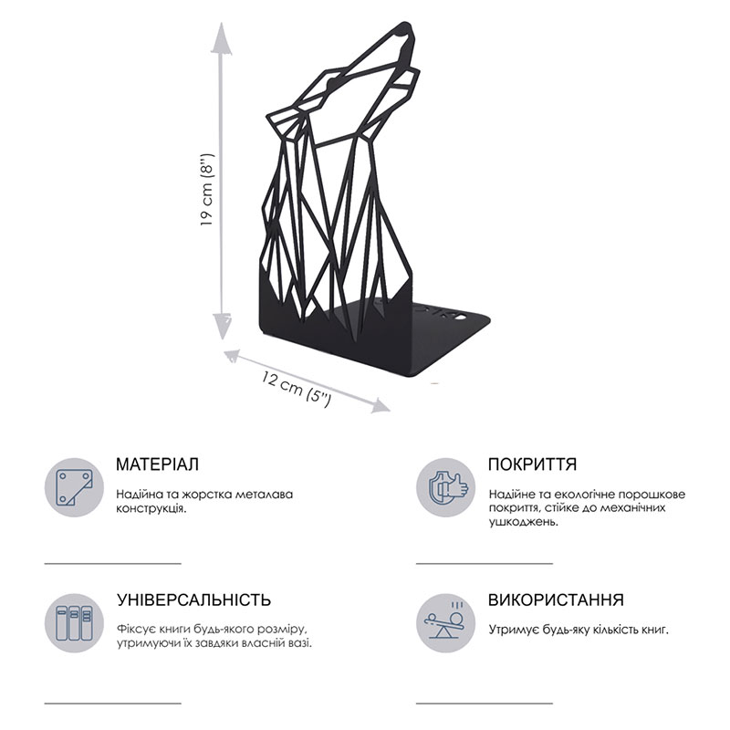 Упор для книг Glozis Wolf (черный)